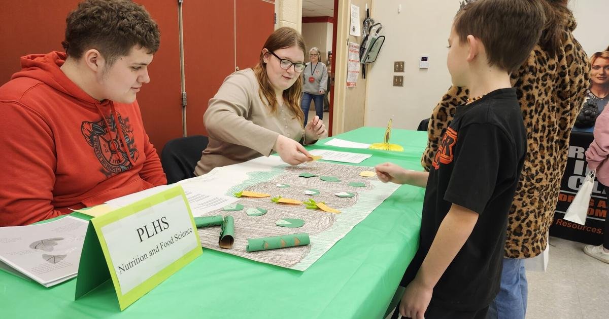 Students in family and consumer sciences teacher Jessica Subich’s Nutrition & Food Science class went to the elementary school March 6 and presented nutrition facts to third-grade students for the
